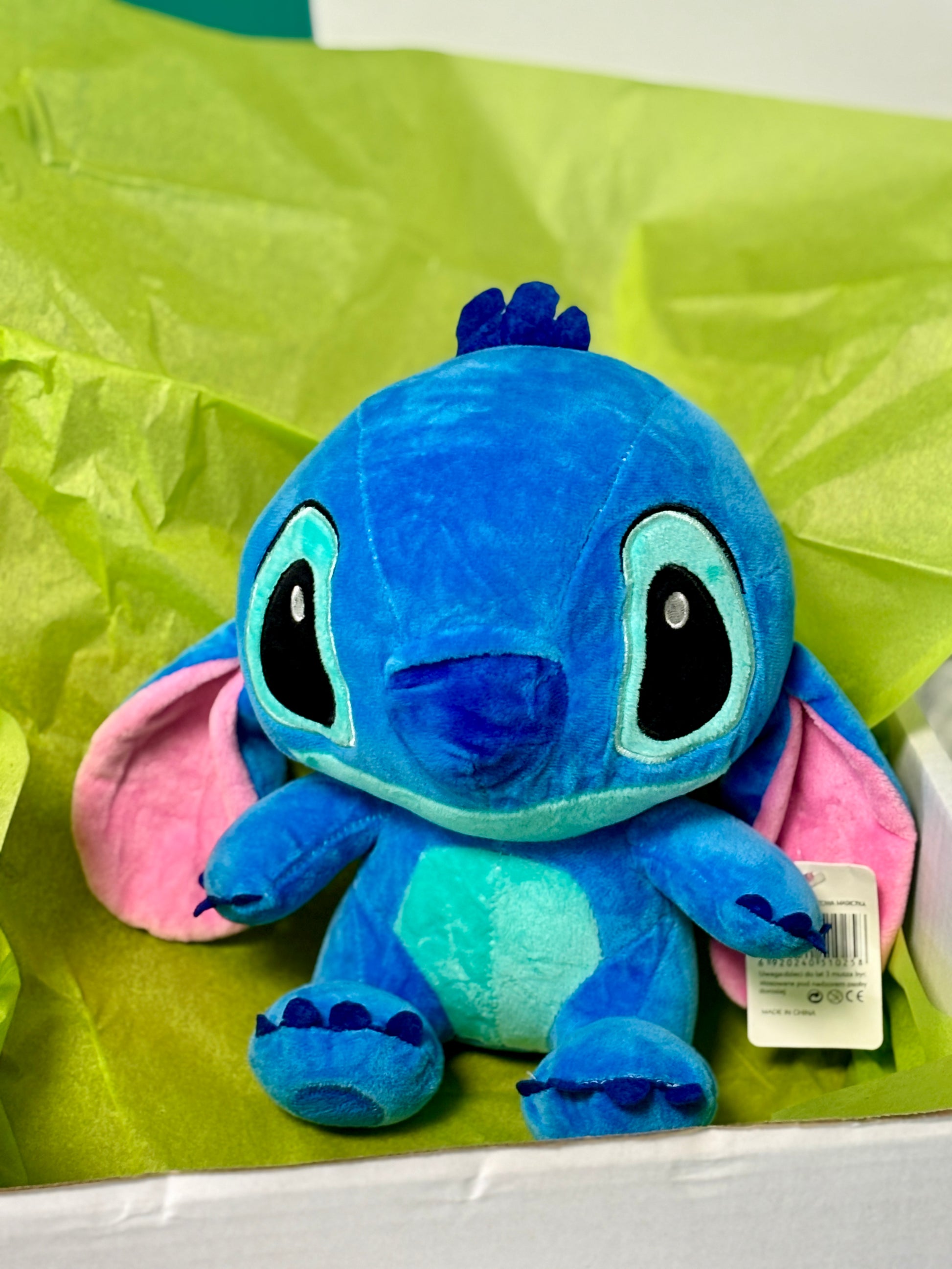 Stitch, personajul din „Lilo & Stitch”, este o jucărie de 25 cm, realizată din materiale moi și plăcute. Are urechi mari, ochi strălucitori și un zâmbet jucăuș. Perfectă pentru îmbrățișat sau ca decor, este un cadou ideal pentru fanii acestui personaj adorabil!